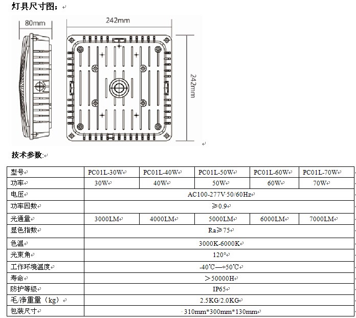 LED頂棚燈燈具特點(diǎn): 1.燈殼采用鋁合金高壓壓鑄,結(jié)構(gòu)輕巧,牢固,耐腐蝕。 2.透光罩采用高透光PC材料壓制而成,經(jīng)棱鏡折射光線柔和。 3.新型硅橡膠密封圈,耐高溫250度以上,保證硅橡膠不老化。 4.長(zhǎng)期保證防護(hù)等級(jí)IP65,采用耐高溫,耐高壓的硅橡膠電線。 5.燈具表面采用靜電噴塑處理,耐高溫性能良好,美觀耐用。 LED頂棚燈應(yīng)用場(chǎng)所: 適用于商場(chǎng),展示館,體育館,樓梯過道,隧道,地下過道,高架路橋,車庫,停車場(chǎng)及建筑立面,公共走廊等室內(nèi)外照明。