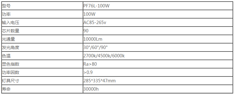 PF76L-100W產(chǎn)品參數(shù)